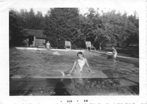 In 1952 Harriet, still raising her daughters on the Mercer Island estate, entered the University of Washington to study Psychology with the goal of earning a PhD. While at the UW, she met William Sumerwell, a biochemist who was researching bound ascorbic acid and later amalyse. They married, and Bill moved into the Starr home with his daughter. In 1956 they added a Master Bedroom with a fireplace for themselves, and a bedroom between the detached garage and the east end of the house for one of the daughters. In 1960 the Sumerwells moved to Washington DC, in part from Bill’s disillusionment with his research, which he believed had been attributed to others at UW, who later received a Nobel Prize in Physiology based in part upon Sumerwell’s contributions. Harriet, feeling a strong attachment to the Mercer Island home, retained ownership and instead rented it to a group of pilots, who in the 1970’s found the secluded estate perfect for hosting wild parties around the outdoor pool.